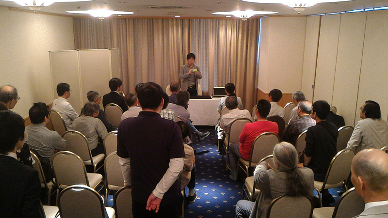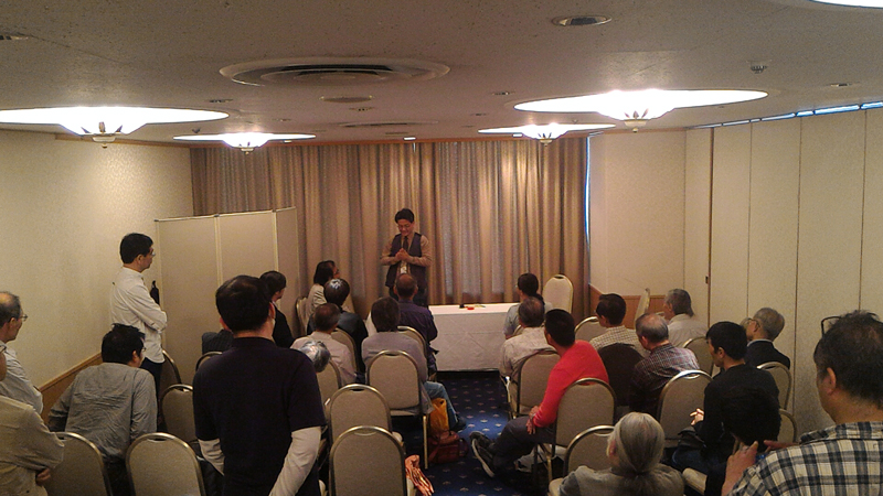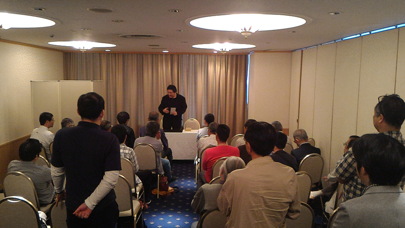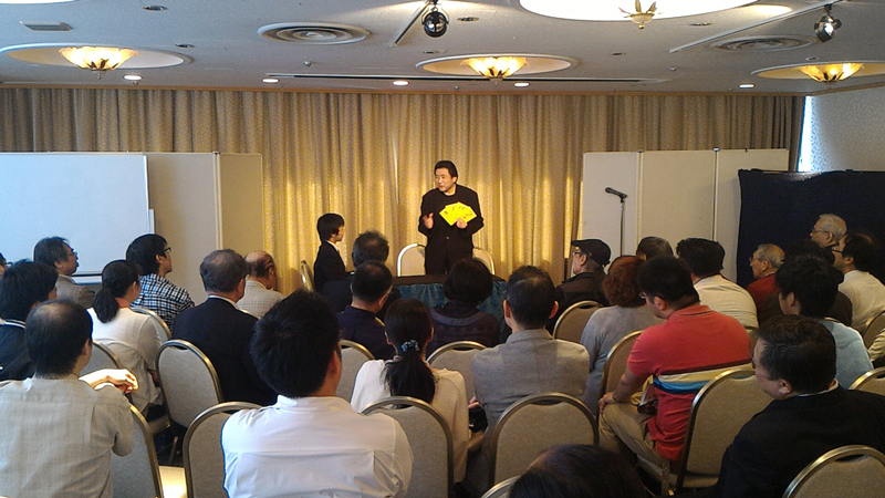恒例になりましたクロースアップマジックの集いが、去る5月14日に大阪梅田の阪急ターミナルビル17階、ターミナルスクエア17で “OPEN SESAME” と題して開催されました。今回は同会場で午前中に、FISMのアジア予選のための日本予選が行われたこともあり、80名以上の参加者とディーラーの出品がありました。今回の出演者は、赤松洋一、石田隆信、岸本道明、塩沢善一郎、谷英樹、とうそん、深井洋正、福井哲也、福岡康年、前野隆夫、Yuji 村上、山崎真孝の各氏に加えIBM東京リング会長の ゆみさんにも出演していただきました。進行は赤松洋一、福岡康年が担当でした。 当日都合の悪くなった塩沢さんの演技を畑さんが演じました。スベンガリの最新号22号の発売もあり、賑やかな催しとなりました。