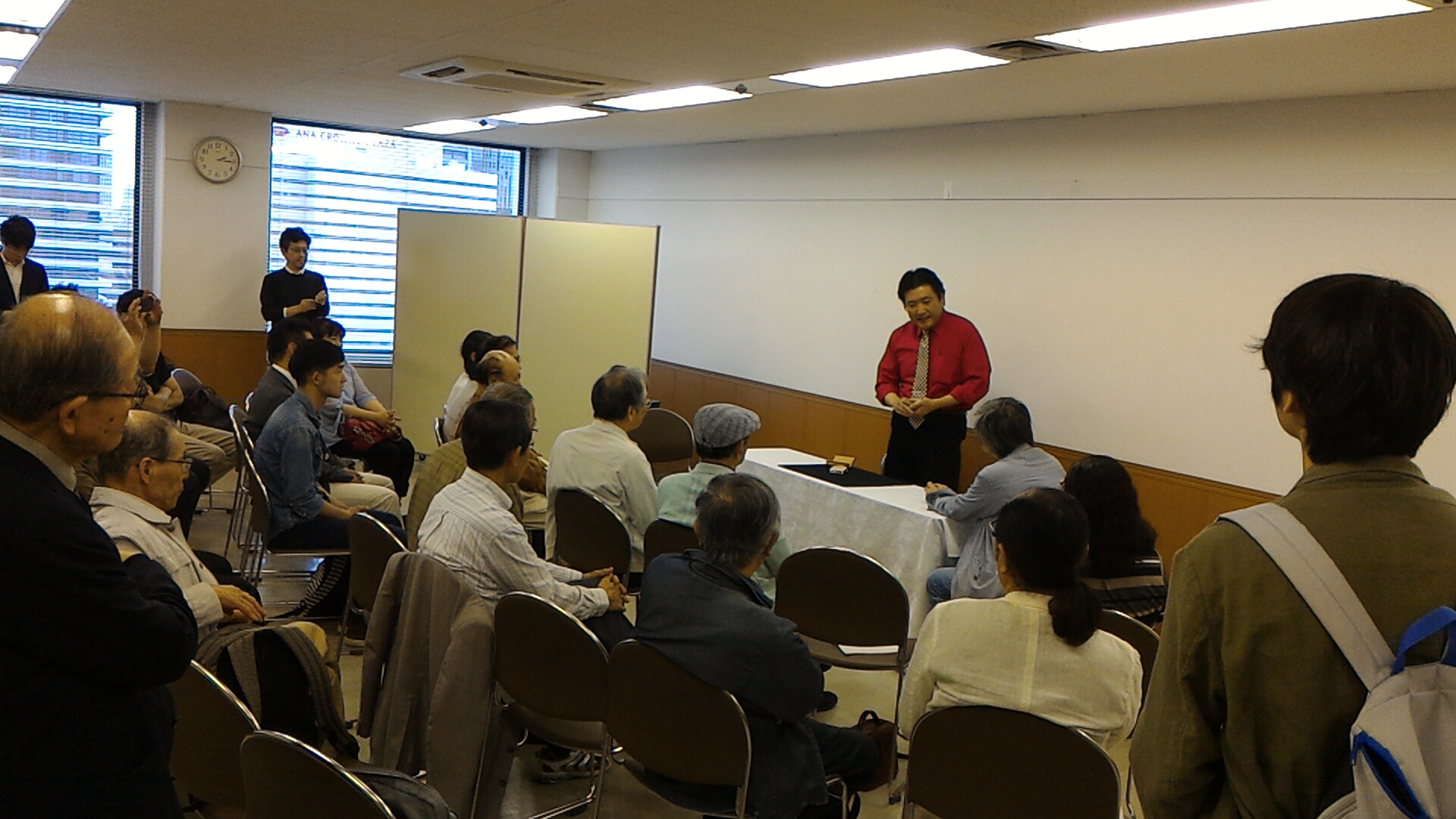 今年のクロースアップマジックの集いが去る5月20日に大阪梅田の大阪駅前第3ビル17階 ティーオージー11, 12号室で “Anytime, Anywhere” と題して開催されました。約60名の参加者とディーラーの出品があり盛会となりました。今回の出演者は、赤松洋一、石田隆信、岸本道明、立川恭平、谷英樹、とうそん、福井哲也、前野隆夫、Yuji 村上、山崎真孝の各氏でした。進行は前野隆夫、川島友希が担当でした。今回は若手の技巧派の立川恭平さんに初出演をしていただきました。スベンガリの最新号23号の発売もあり、賑やかな催しとなりました。
